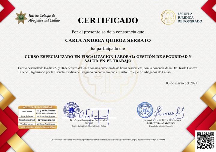 Curso Especializado en Fiscalización Laboral: GESTIÓN DE SEGURIDAD Y SALUD EN EL TRABAJO