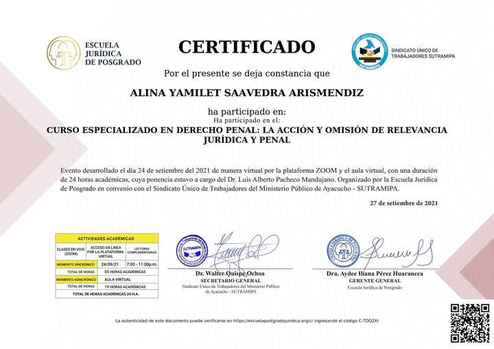 Alina Yamilet Saavedra Arismendiz