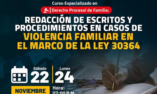 Curso Especializado en Derecho Procesal de Familia: REDACCIÓN DE ESCRITOS Y PROCEDIMIENTOS EN CASOS DE VIOLENCIA FAMILIAR EN EL MARCO DE LA LEY 30364