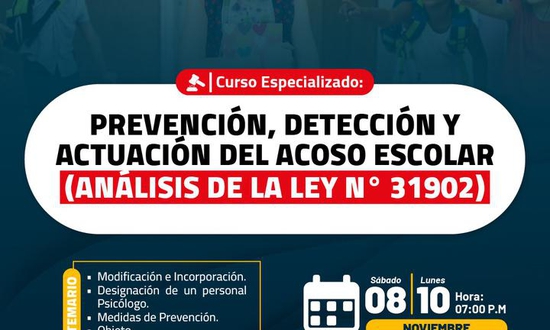 Curso Especializado: PREVENCIÓN, DETECCIÓN Y ACTUACIÓN DEL ACOSO ESCOLAR (ANÁLISIS DE LA LEY N° 31902)